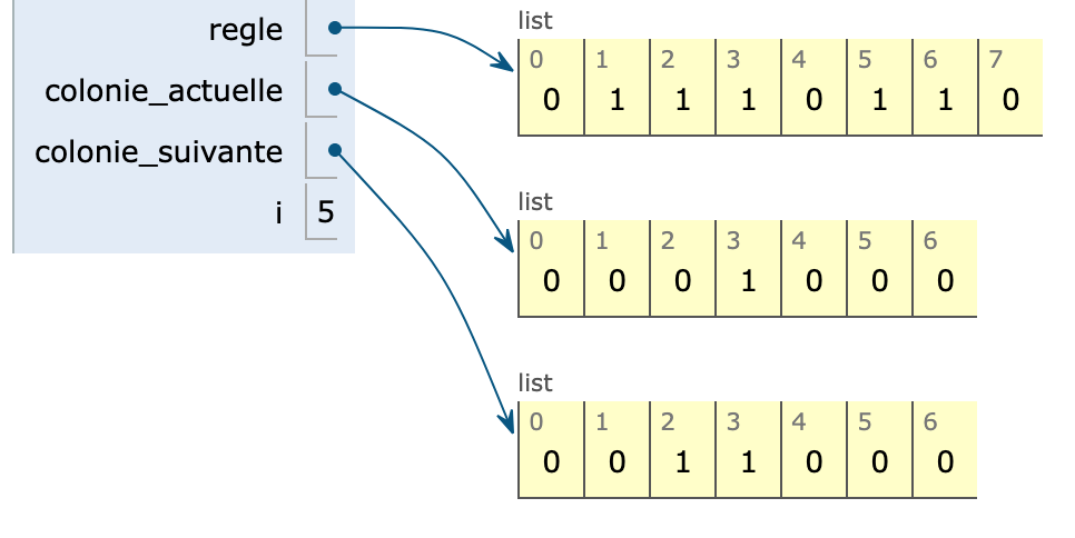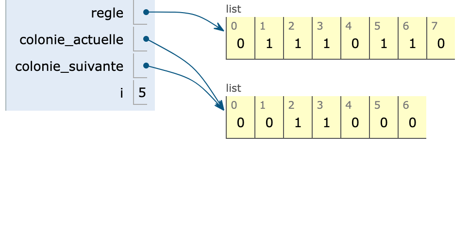 colonie_suivante[i] = regle[bin_to_dec(colonie_actuelle[i-1]),