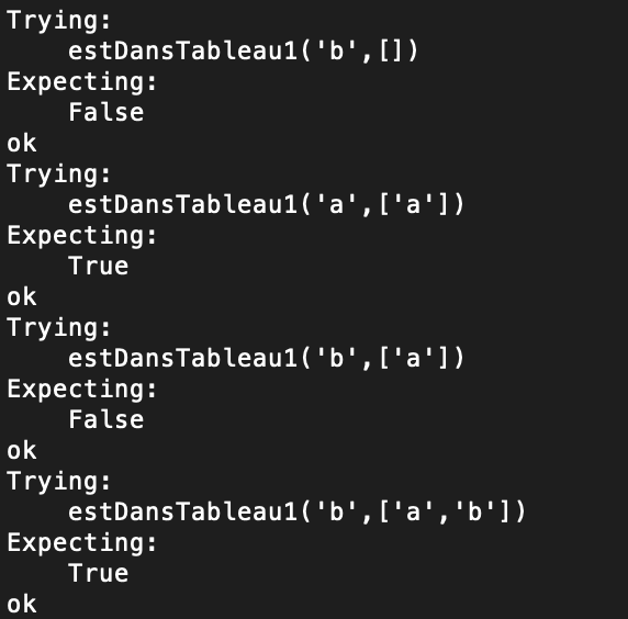 Etant donné un tableau et un élément définir une fonction estDansTableau(élément,Tableau) qui retourne vrai si élément est dans Tableau faux sinon