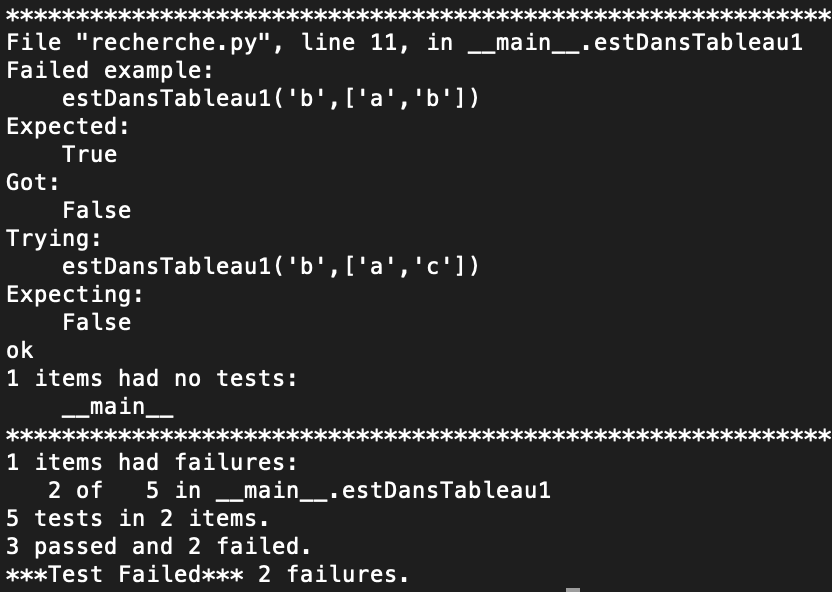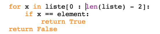 On observe que la boucle est "moins simple" que la précédente et il nous faut être sûr qu'elle retournera le bon résultat quelque soit la liste et quelque soit l'élément
